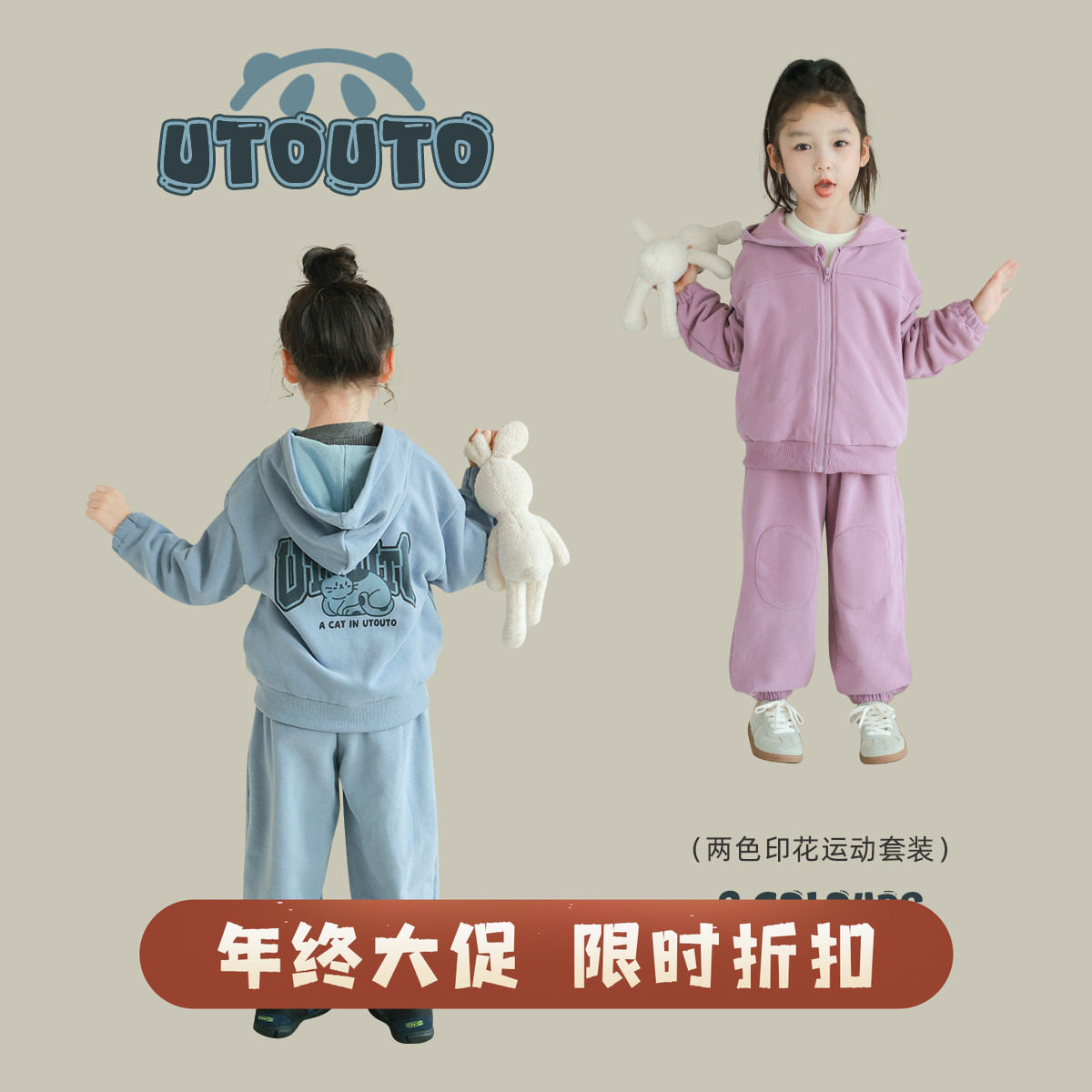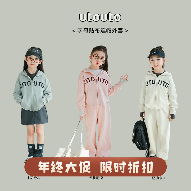 大耳象女童字母贴布连帽外套纯色休闲裤春季新款儿童运动长袖套装