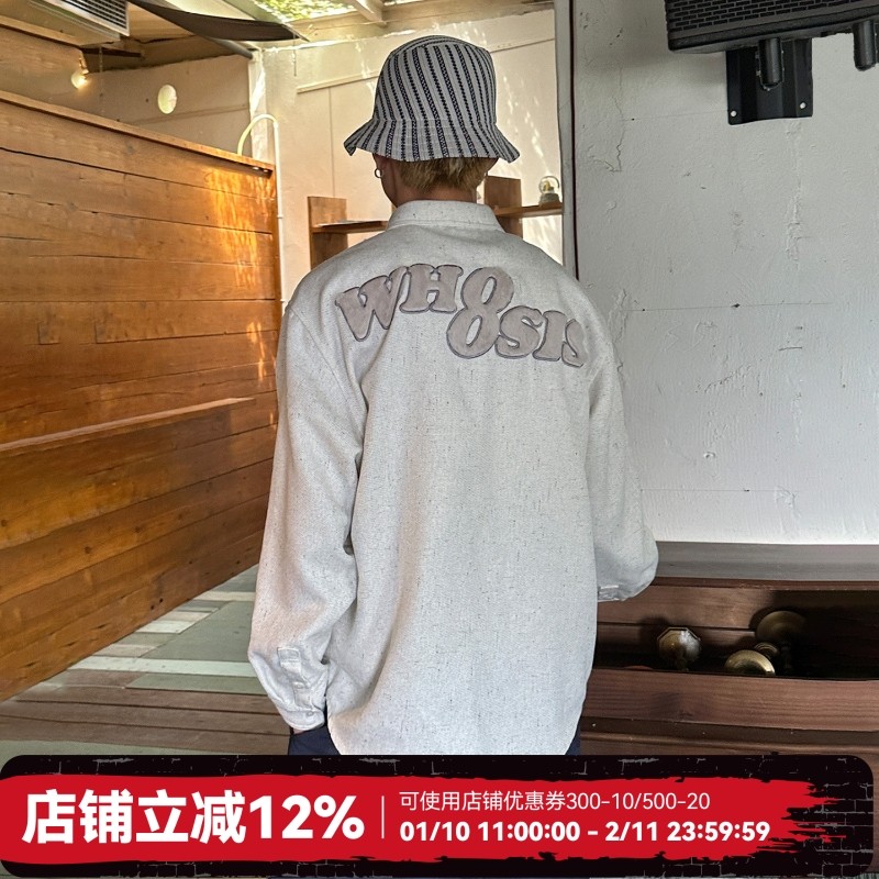 WHOOSIS(不知其名)绒毛贴布破坏衬衣衬衫外套男女春秋校园情侣