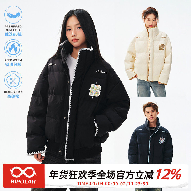 BIPOLAR贴布魔术贴贝壳绣羽绒服冬季新款保暖面包服上衣外套男女