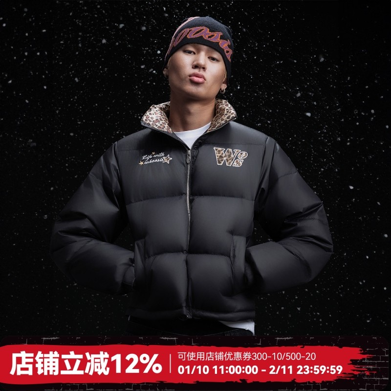 WHOOSIS(不知其名)星星豹纹贴布刺绣90鸭绒羽绒服厚外套冬男女