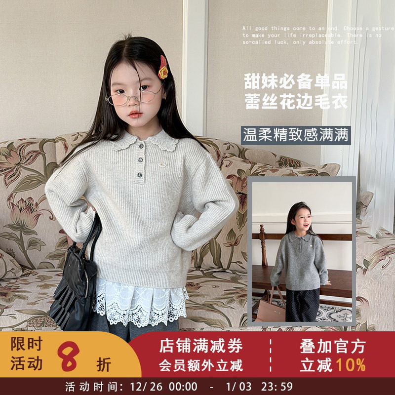 - 蕾丝毛衣女中长款