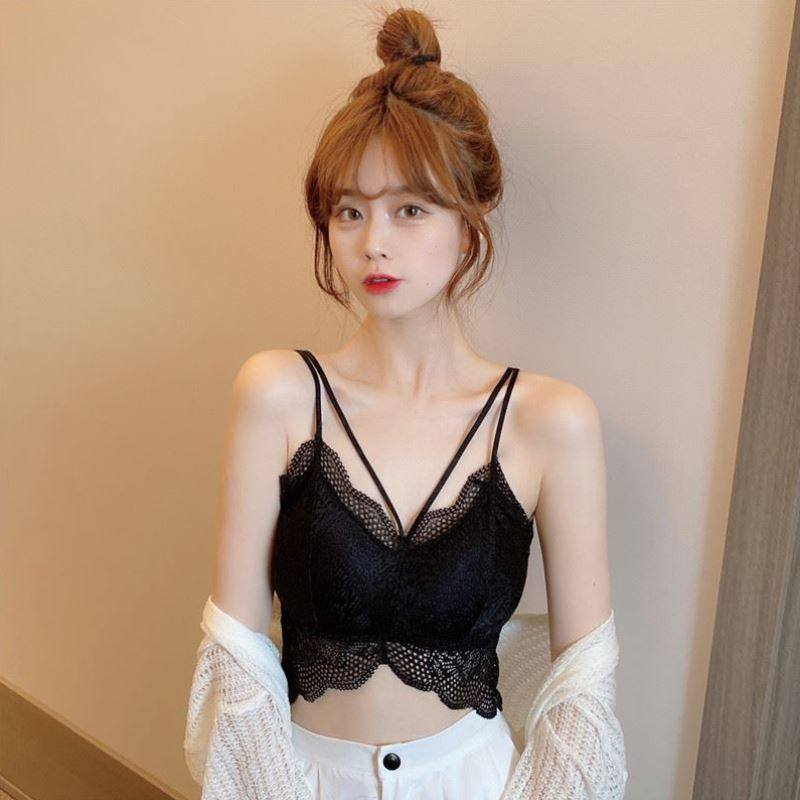 蝴蝶美背蕾丝小背心吊带文胸黑色打底内搭外穿内衣带胸垫网红爆款