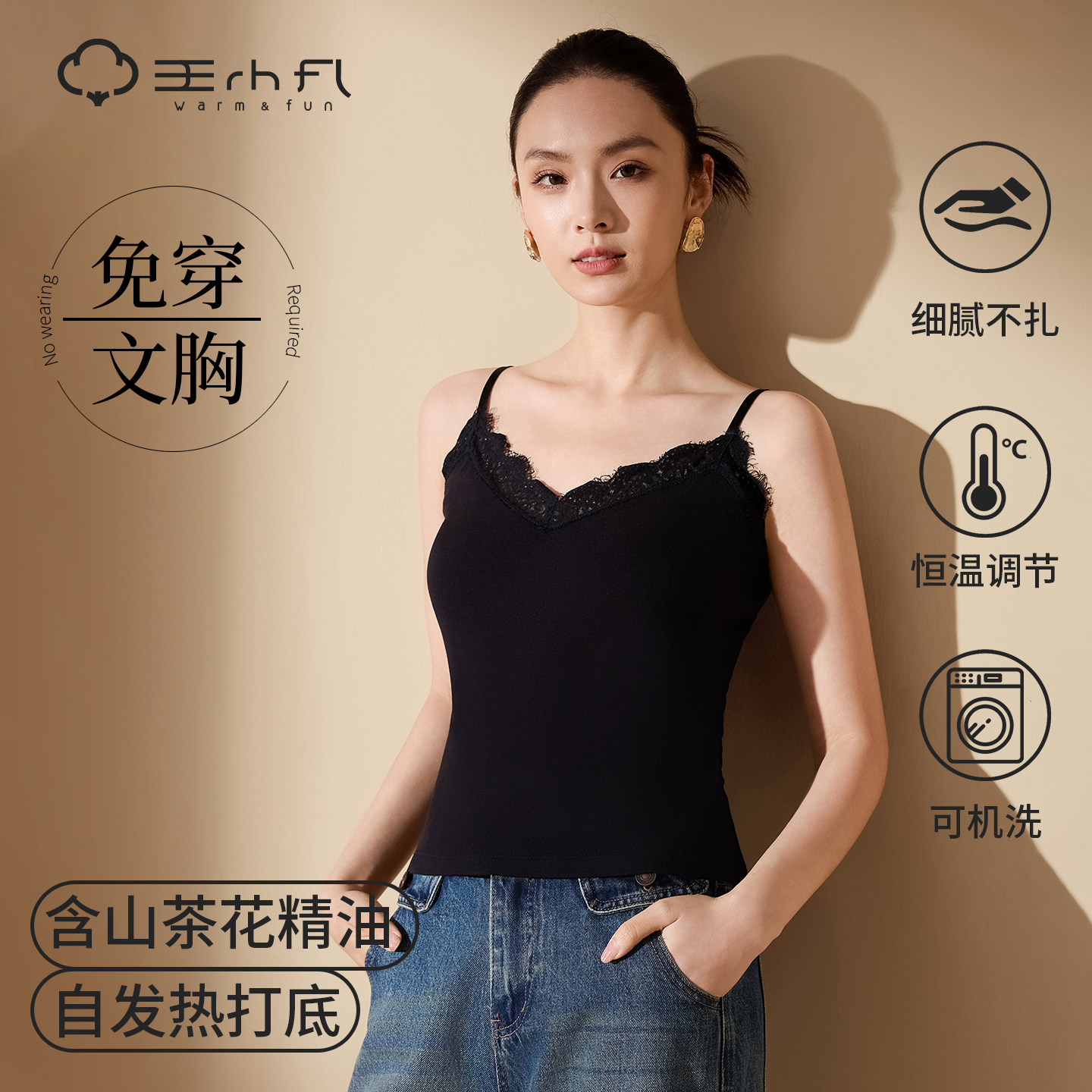 黑色蕾丝吊带带胸垫背心女2025新款秋冬防寒抑菌内搭保暖打底上衣