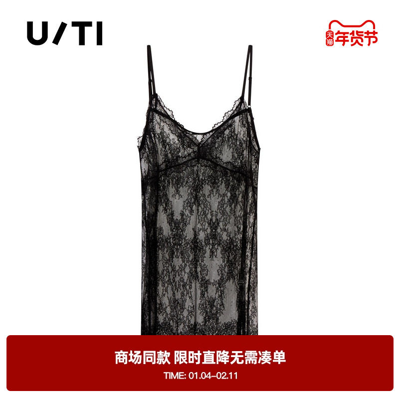 专柜新款U/TI尤缇2025秋季黑色蕾丝吊带 时尚设计感V领内搭上衣女