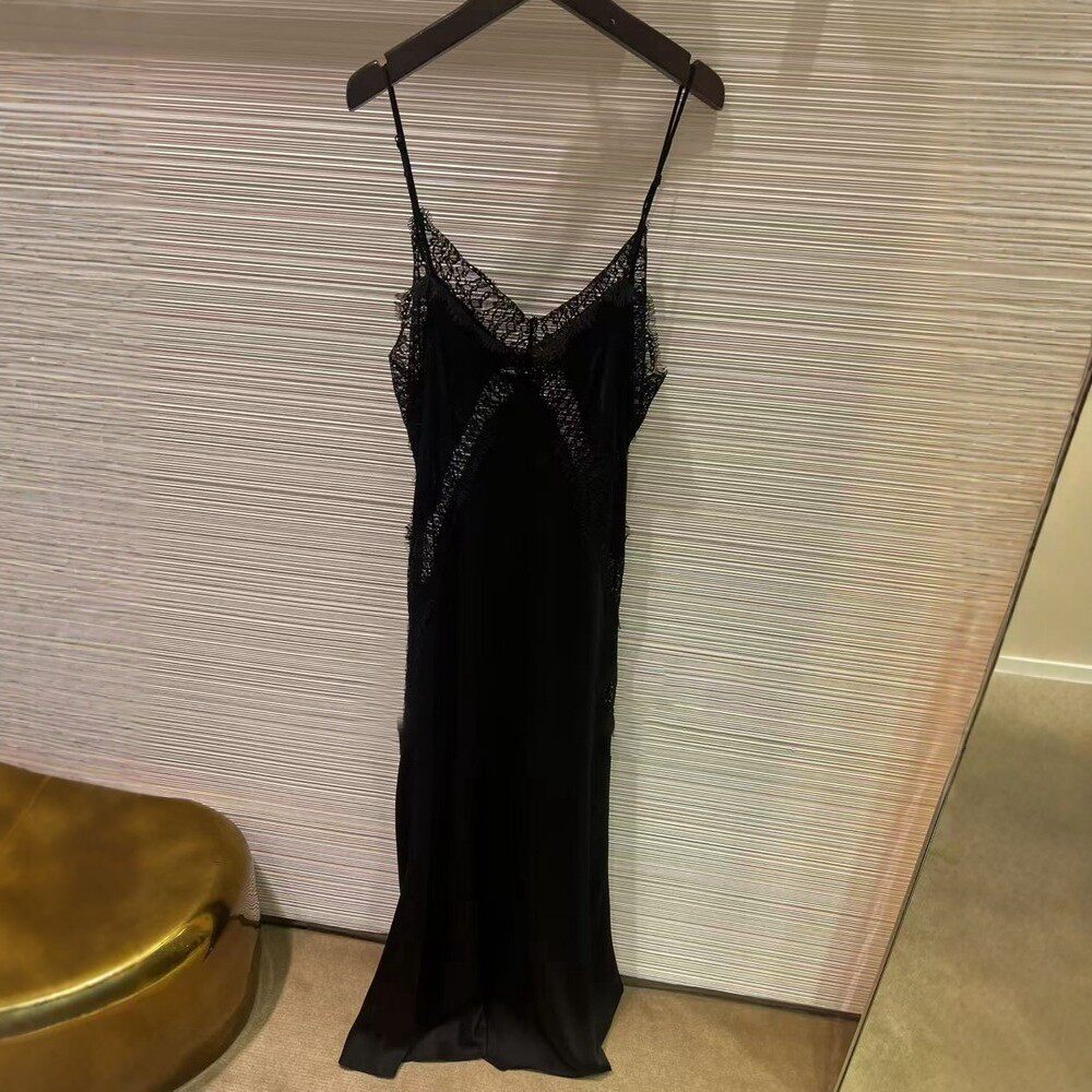 【明星同款】LEDIM WANG拼贴蕾丝吊带连衣裙女25秋冬新款黑色长裙