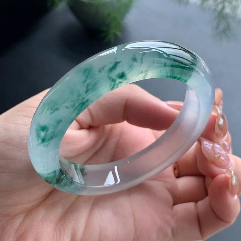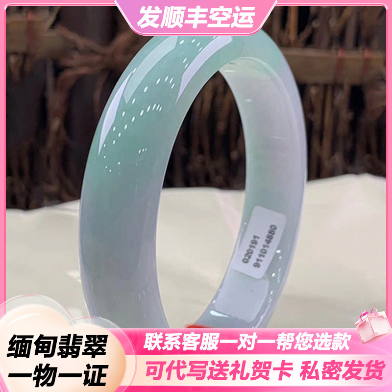 最相物“飘然系列”缅甸冰种翡翠玉手镯子女款冰飘花真玉镯手饰品