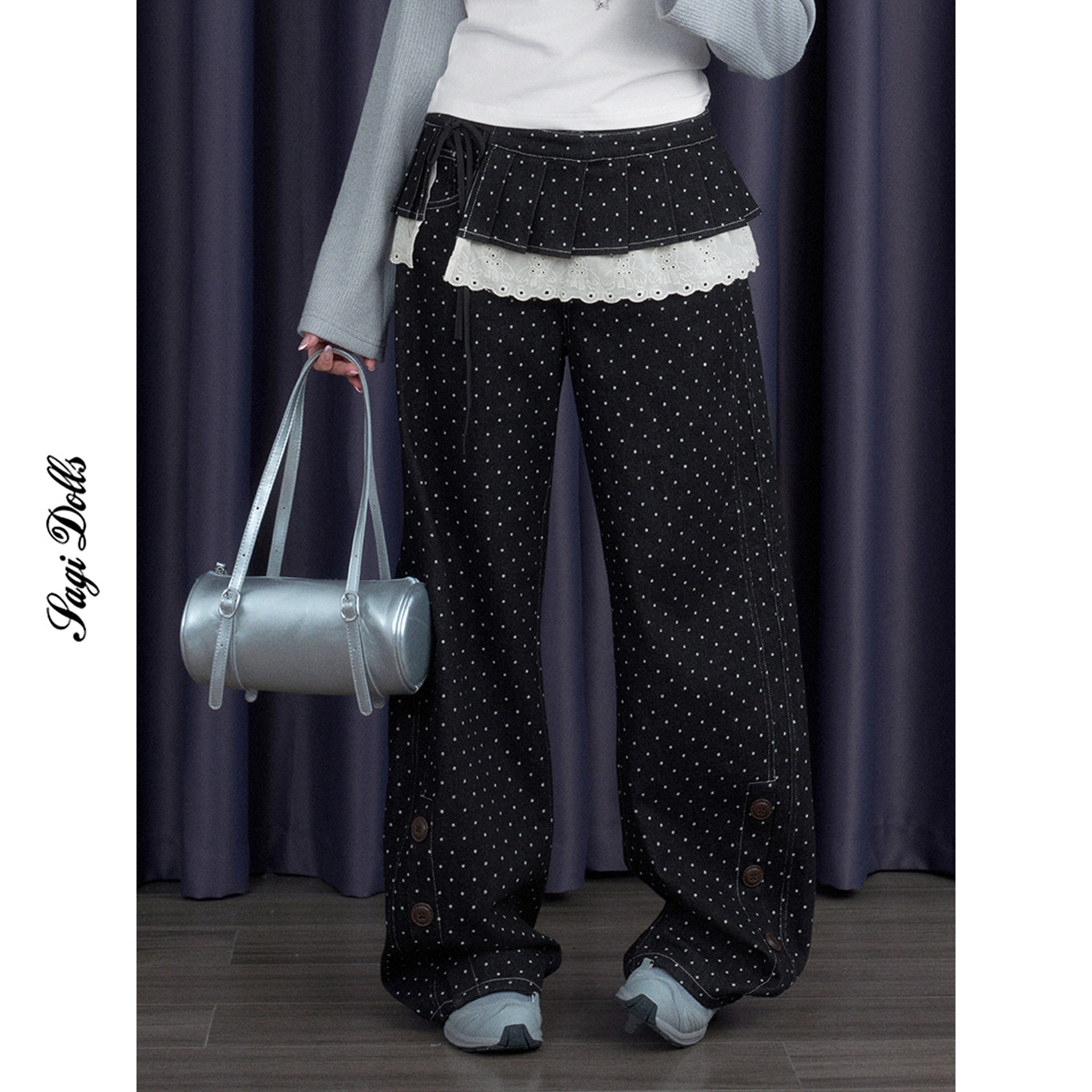 SagiDolls少女斗志可拆卸裙帘~黑色波点牛仔裤休闲裤防拖地设计秋