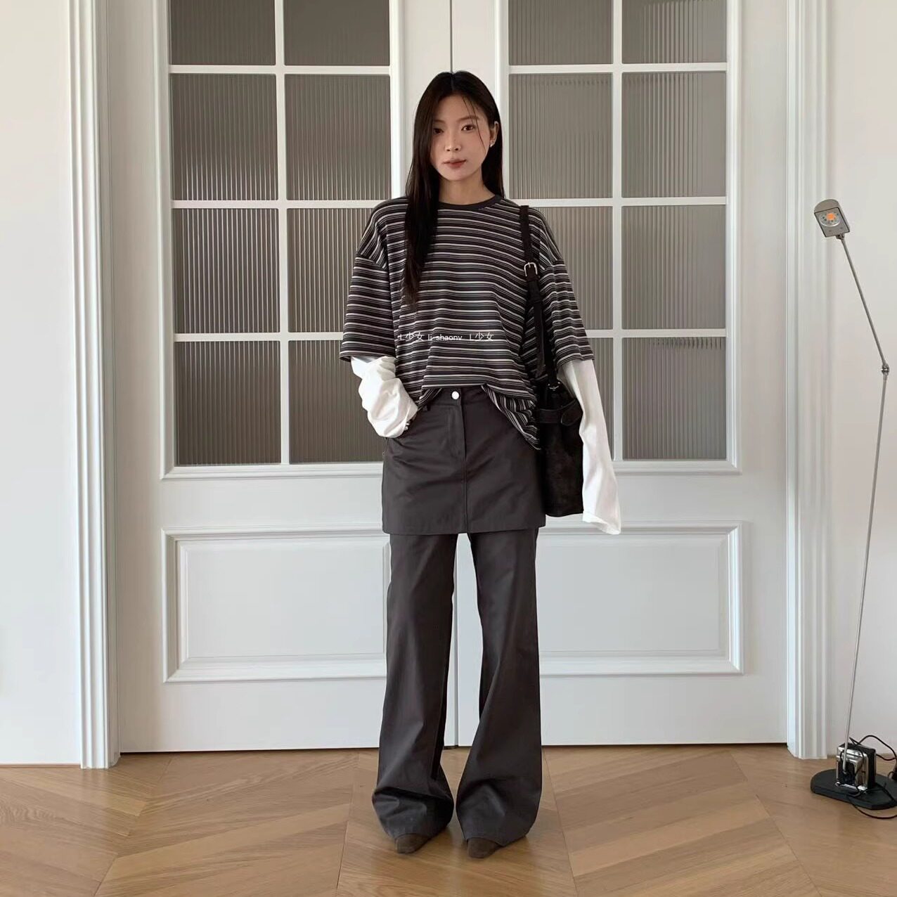 L少女 waitmore时尚腰封屁帘假两件休闲裤女宽松阔腿牛仔裤616825