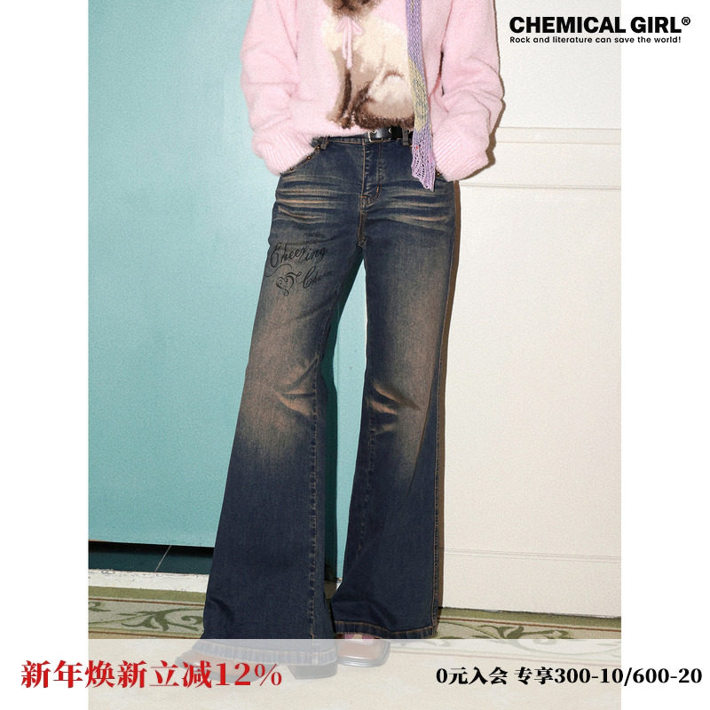 化学少女 X2「逆时间」低腰牛仔裤复古梨形遮胯显瘦裤子秋冬微喇