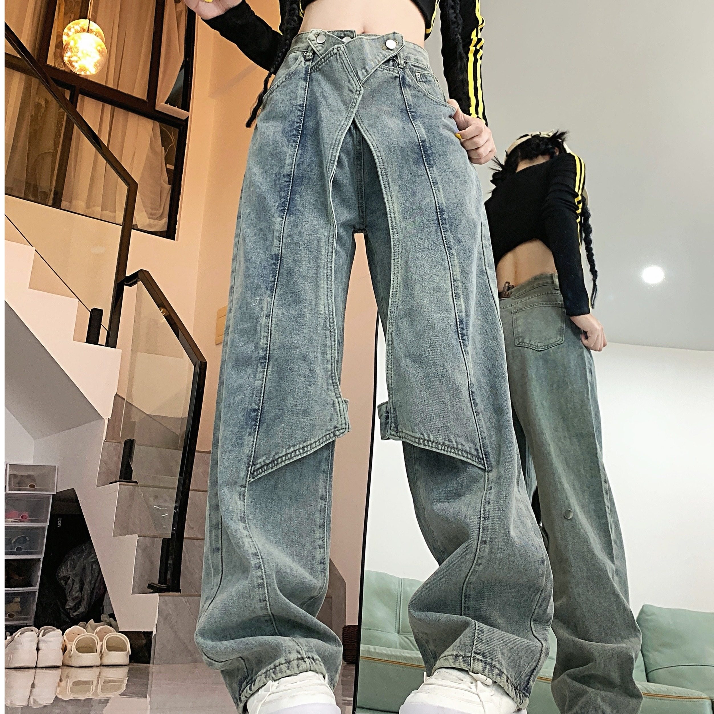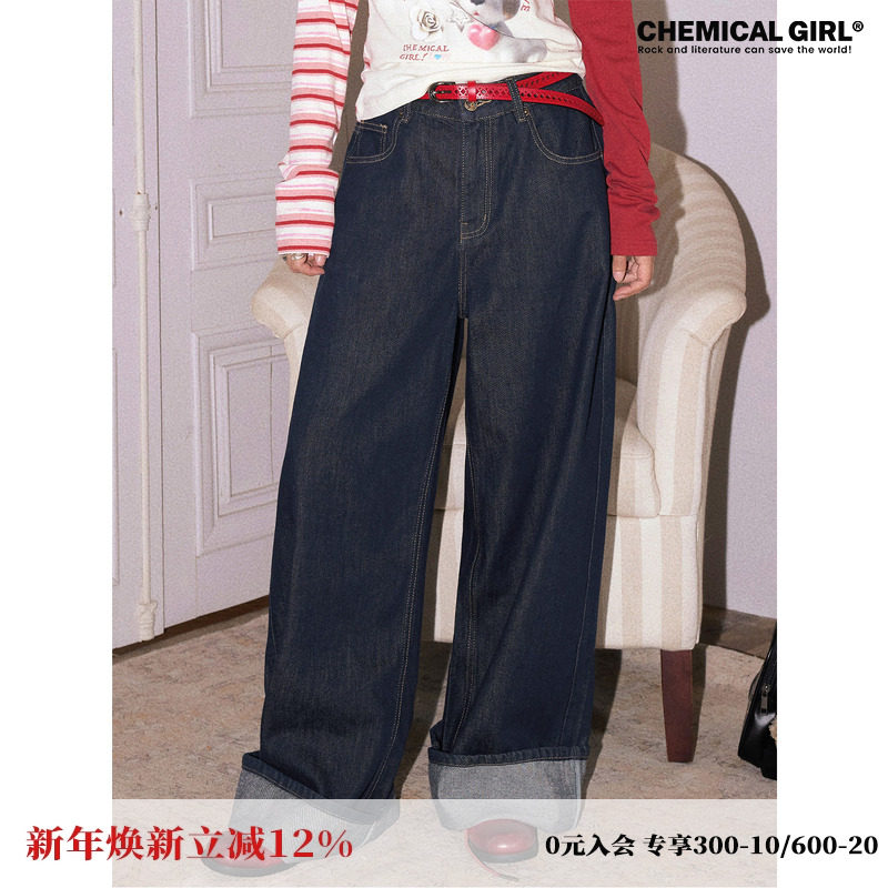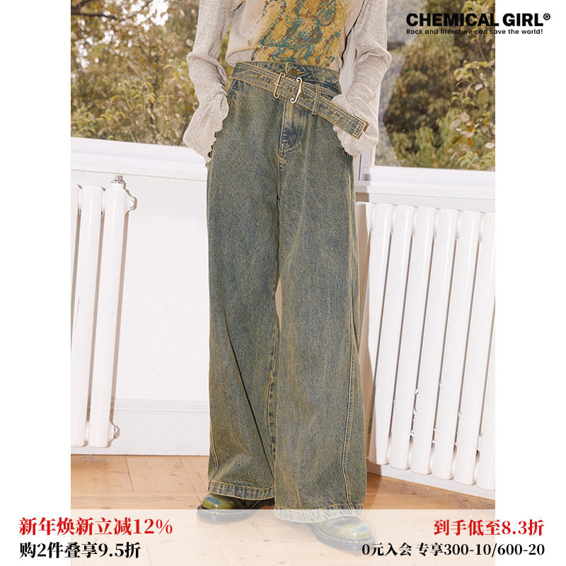 化学少女 X4「错位地带」高腰微弹垂感牛仔裤复古工装显高显瘦