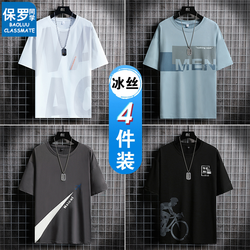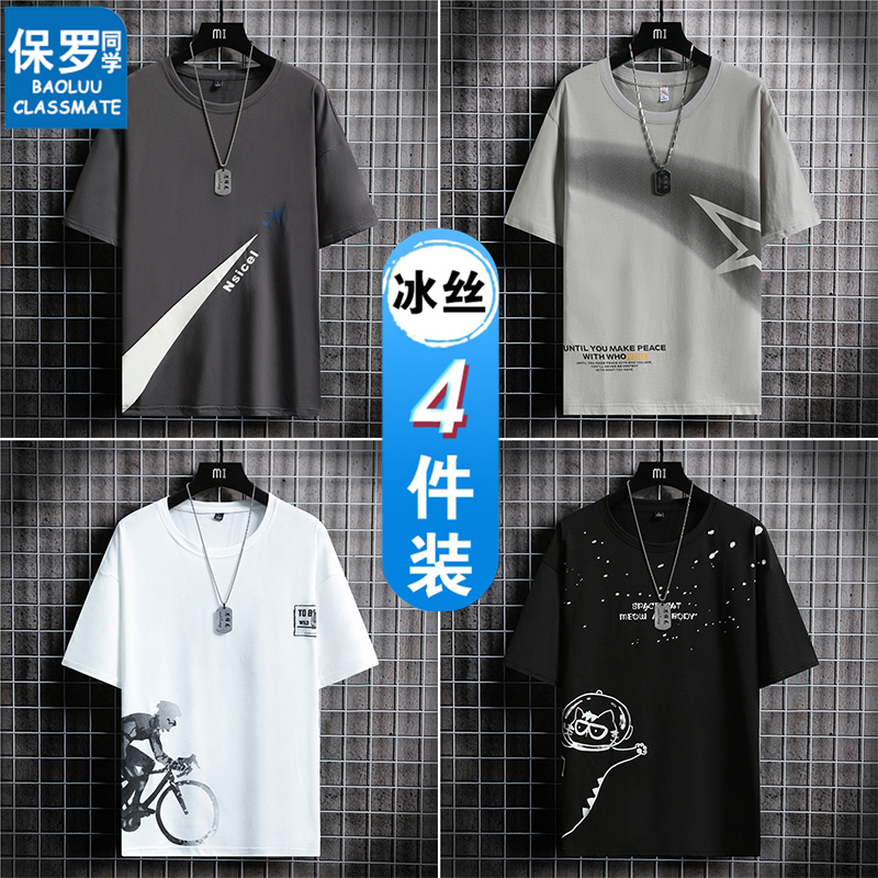 【4件】2025新款短袖男士t恤学生半袖韩版宽松体恤男装潮流上衣服