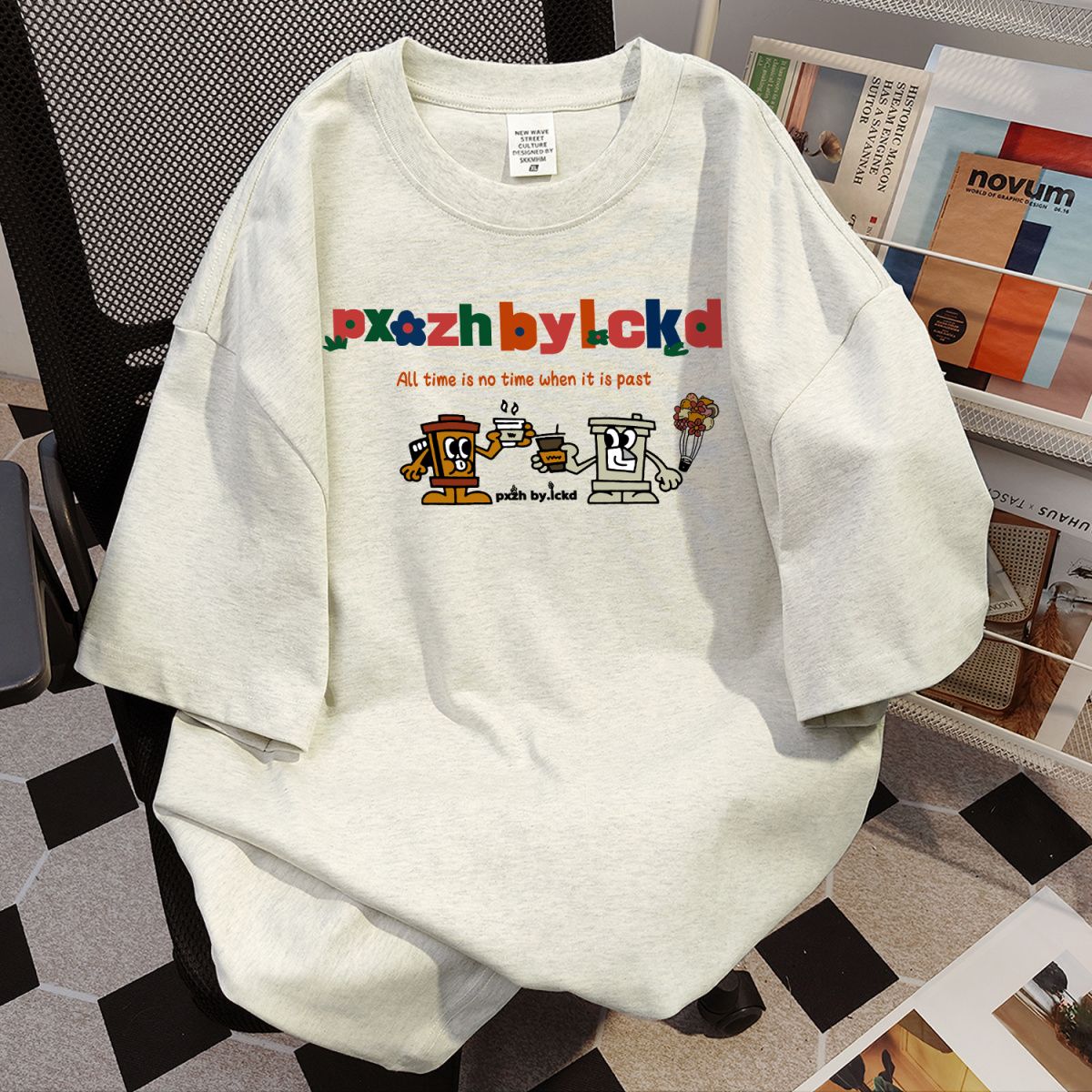 重磅纯棉韩版复古卡通印花短袖T恤男学生夏季ins百搭潮流宽松上衣