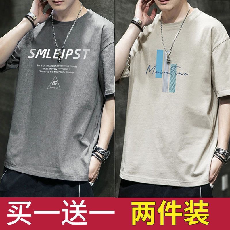 买一送一夏季短袖t恤男宽松潮流休闲五分袖学生男女同款韩版体恤