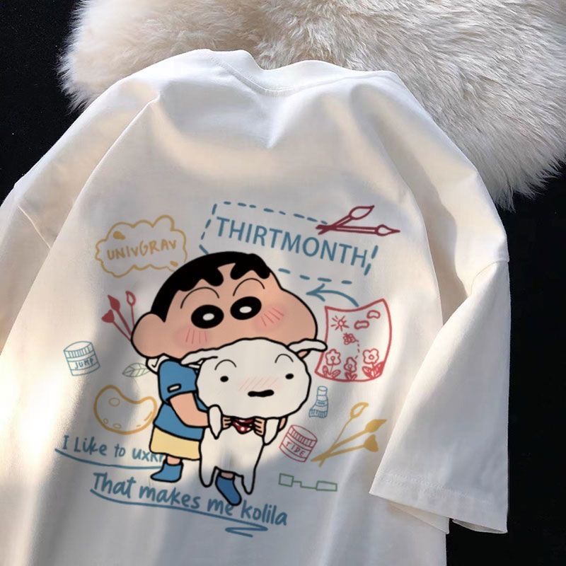 蜡笔小新动漫纯棉港风短袖t恤男女童夏季韩版宽松学生ins上衣潮