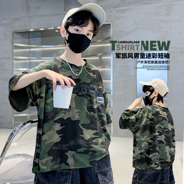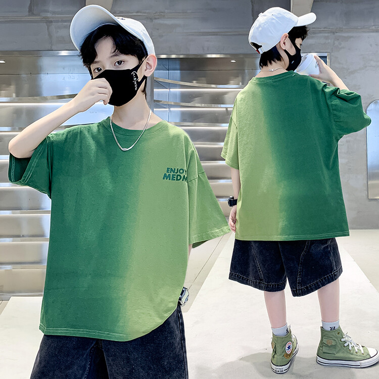 夏款童装男孩短袖T恤渐变色宽松韩版潮流半袖上衣青少年学生潮牌i