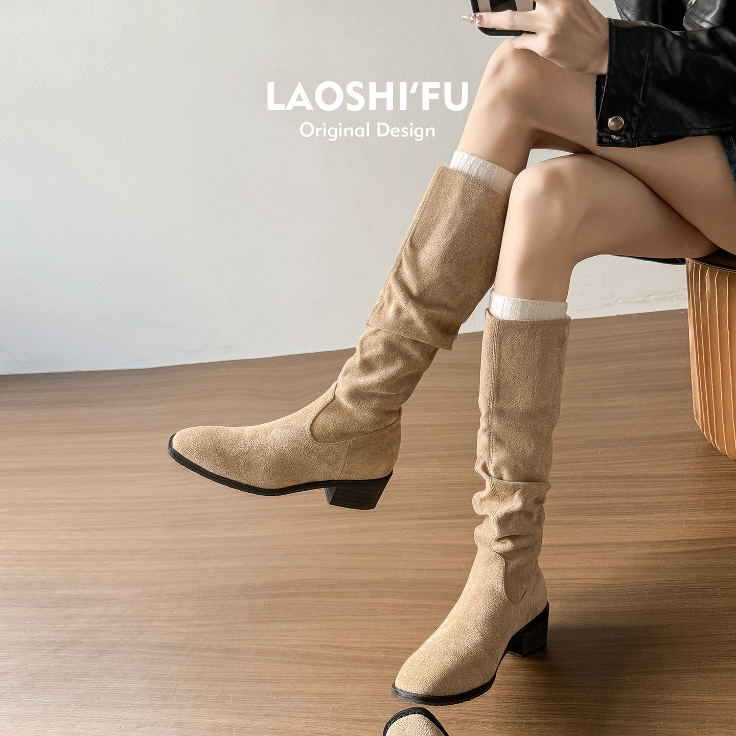 - 真皮磨砂皮女靴长靴