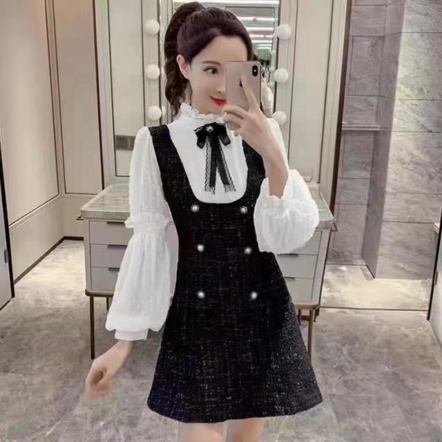 假两件长袖衬衫连衣裙女装春秋小个子法式气质短绝美穿搭雪纺短裙