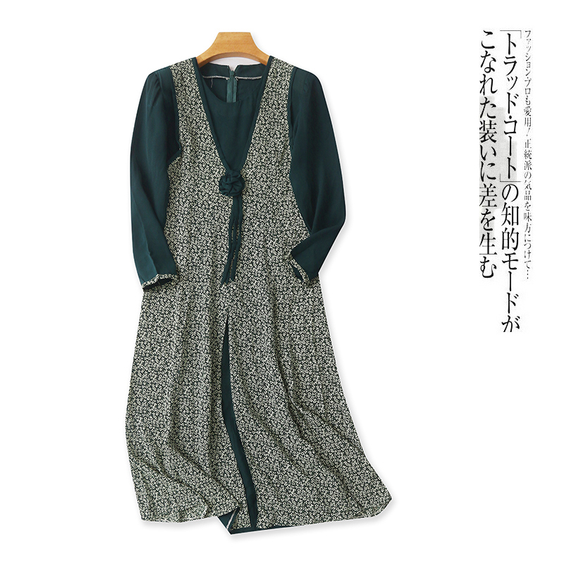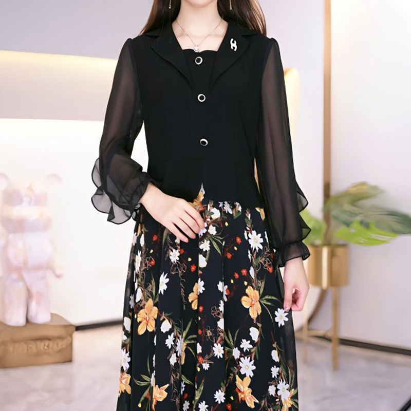民族风碎花雪纺衫女中长款2025春秋假两件连衣裙时尚显瘦拼接百搭