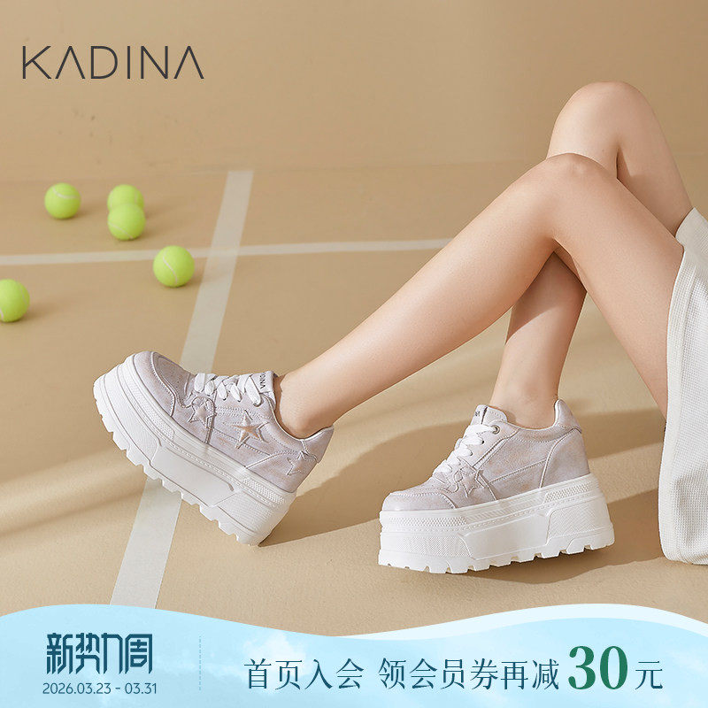 卡迪娜复古星星松糕厚底小白鞋女小个子增高运动板鞋KWCS250103