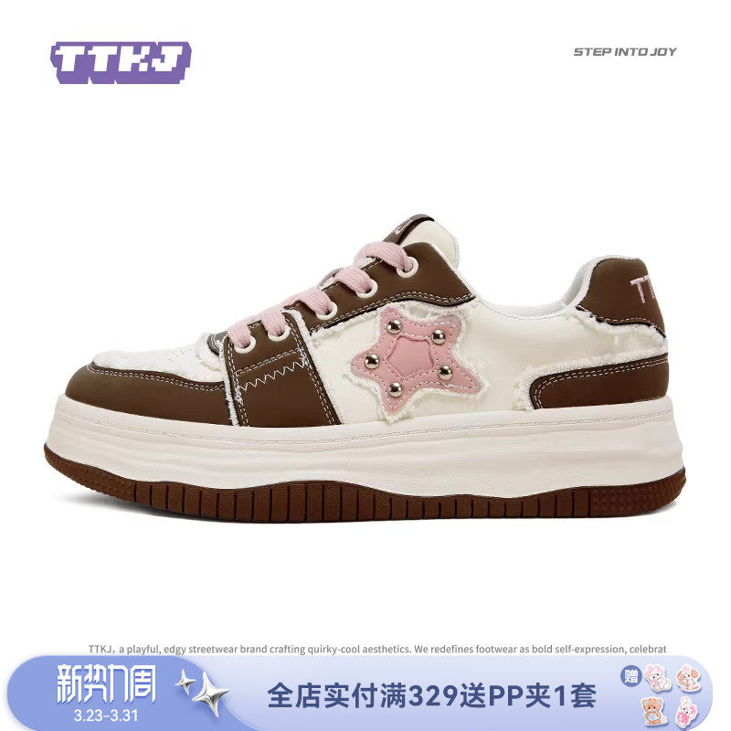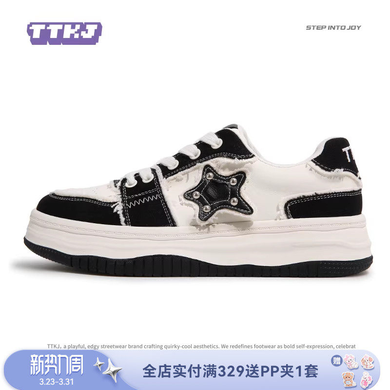 TTKJ星星板鞋女2026新款原创设计厚底增高休闲运动鞋子百搭小白鞋