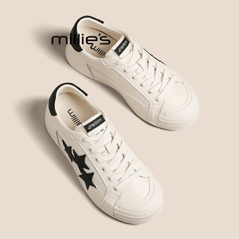 MILLIE'S/妙丽厚底星星板鞋女2026新款潮流百搭休闲鞋增高小白鞋
