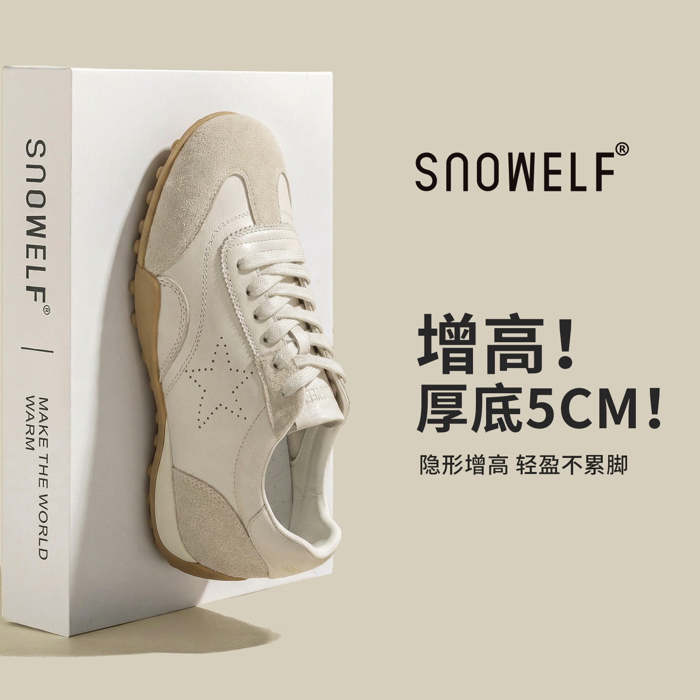 白色星星鞋厚底德训鞋女2026新款春季鞋子内增高女鞋百搭休闲板鞋