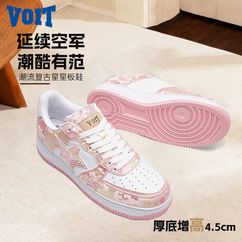 VOIT沃特丝绸星星板鞋男粉色厚底增高休闲2026年新款低帮小白鞋女