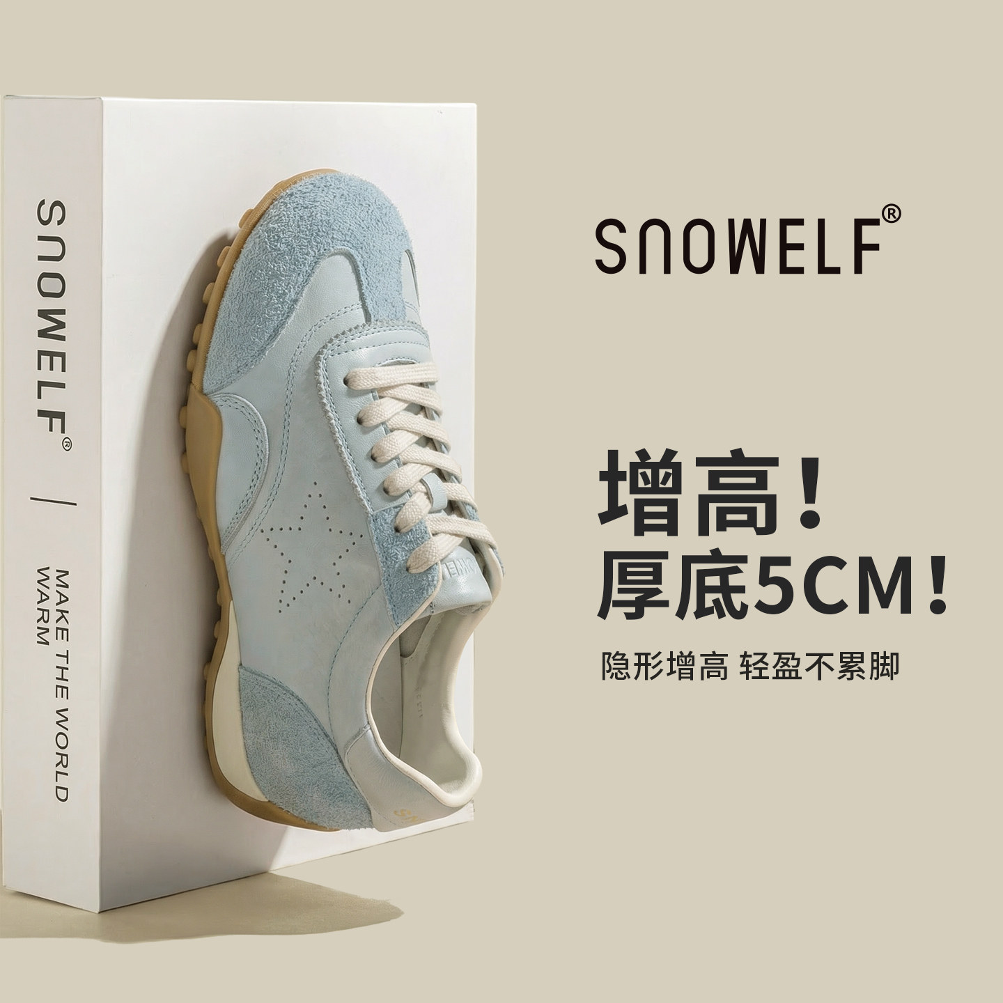 【潘星星专属】SK861牛皮厚底增高小白鞋女百搭休闲运动板鞋