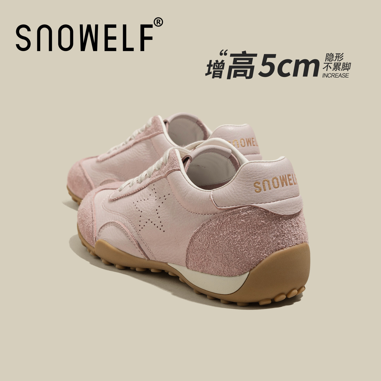 真皮阿甘德训鞋女款2026春季新款粉色鞋子内增高女鞋厚底星星板鞋