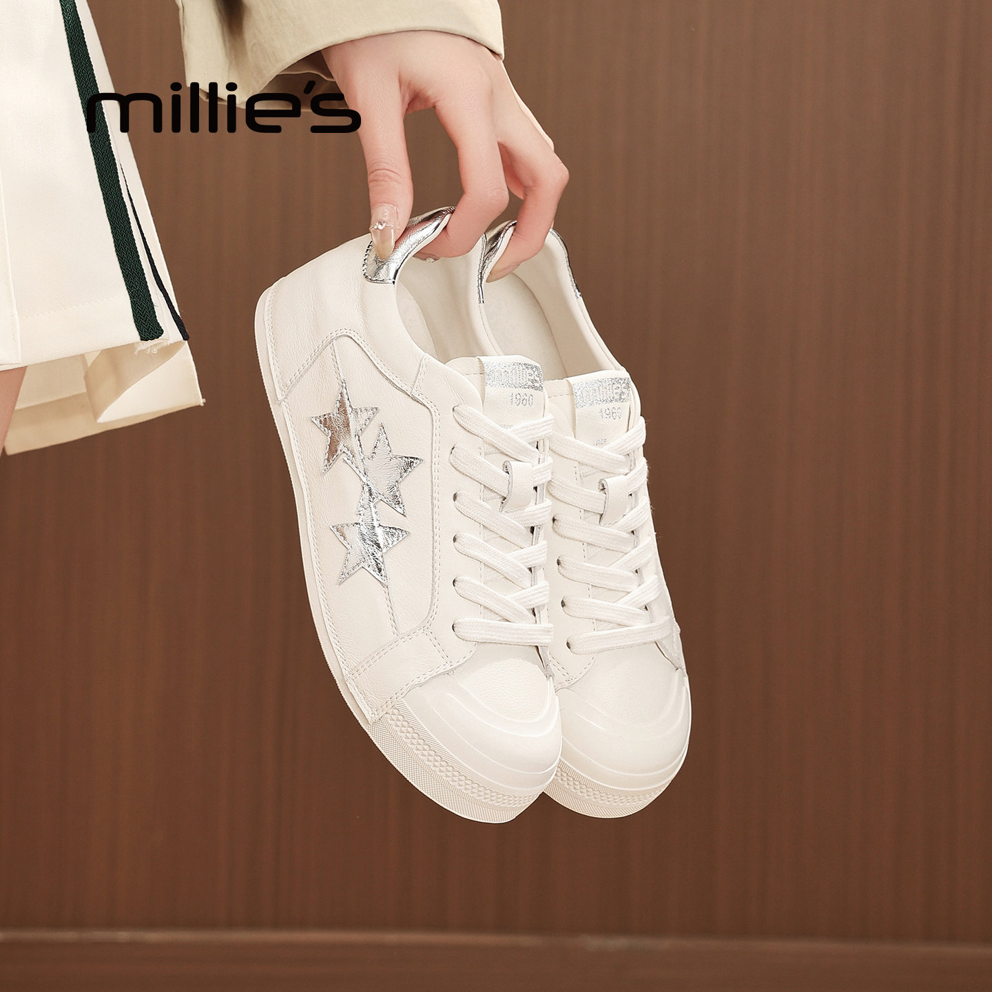 MILLIE'S/妙丽星星小白鞋女鞋2026春新款厚底休闲鞋系带深口单鞋