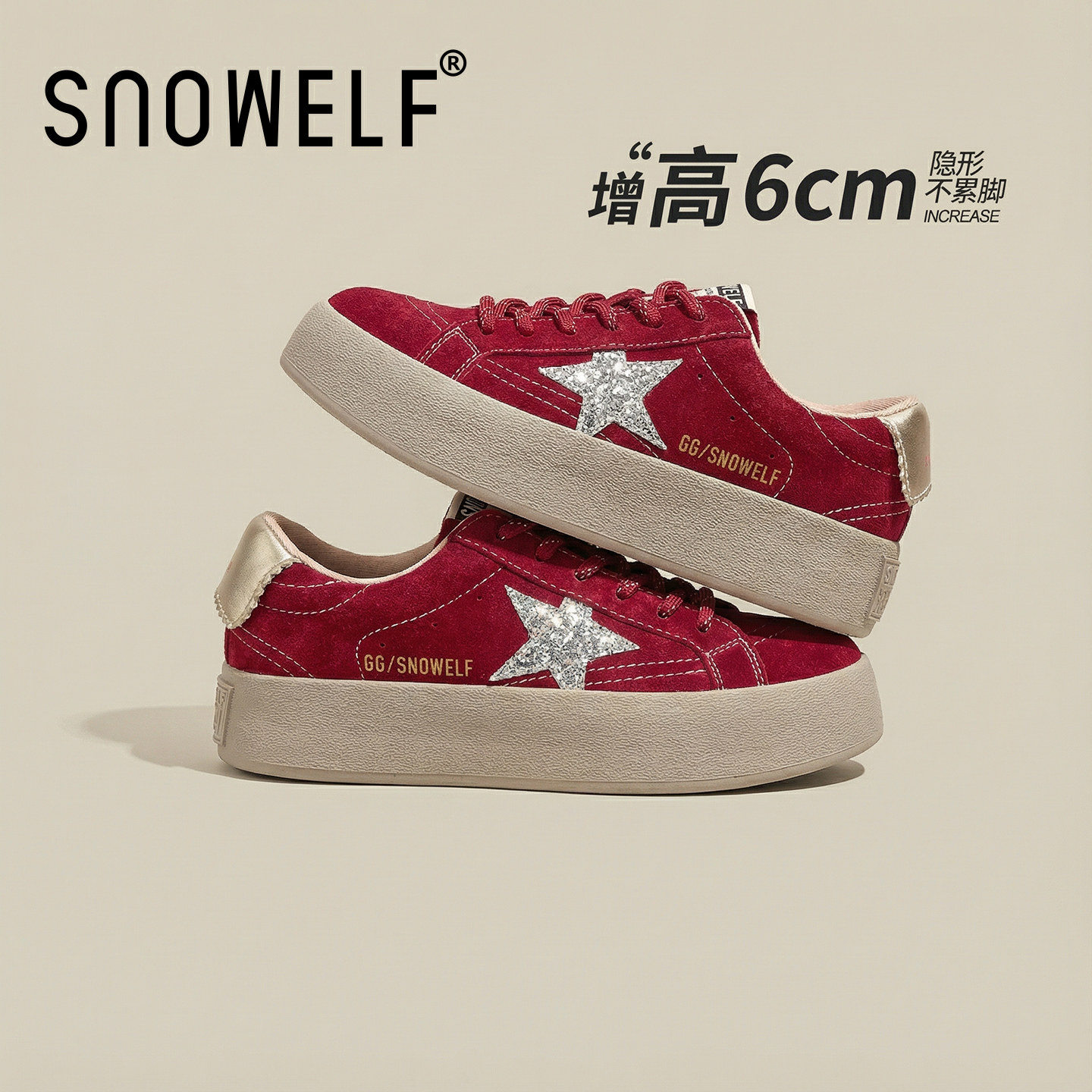 厚底德训鞋女2026新款春夏红色鞋子内增高女鞋百搭休闲板鞋星星鞋