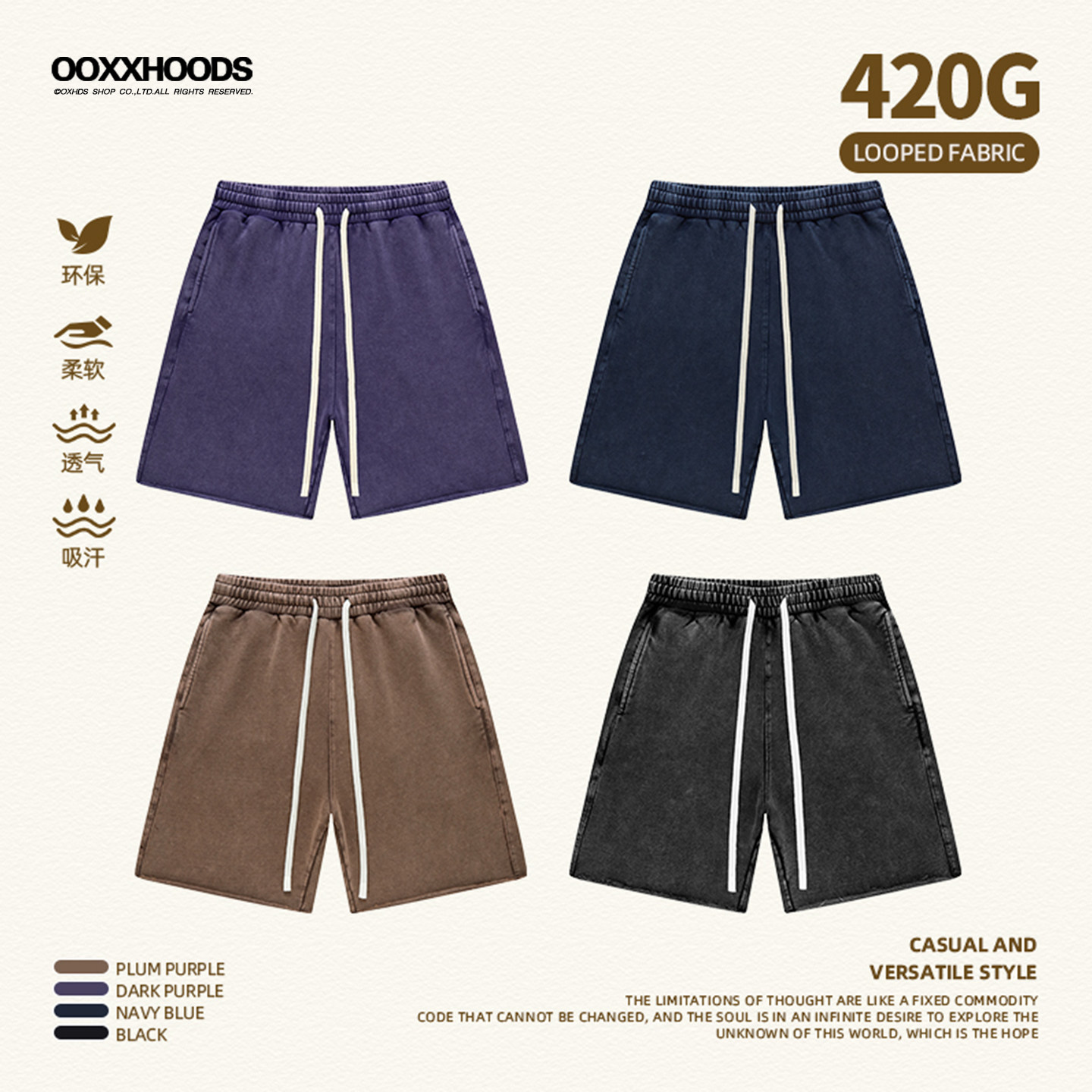 440G重磅毛圈纯色运动短裤男潮牌高街KANYE侃爷基础百搭休闲裤子