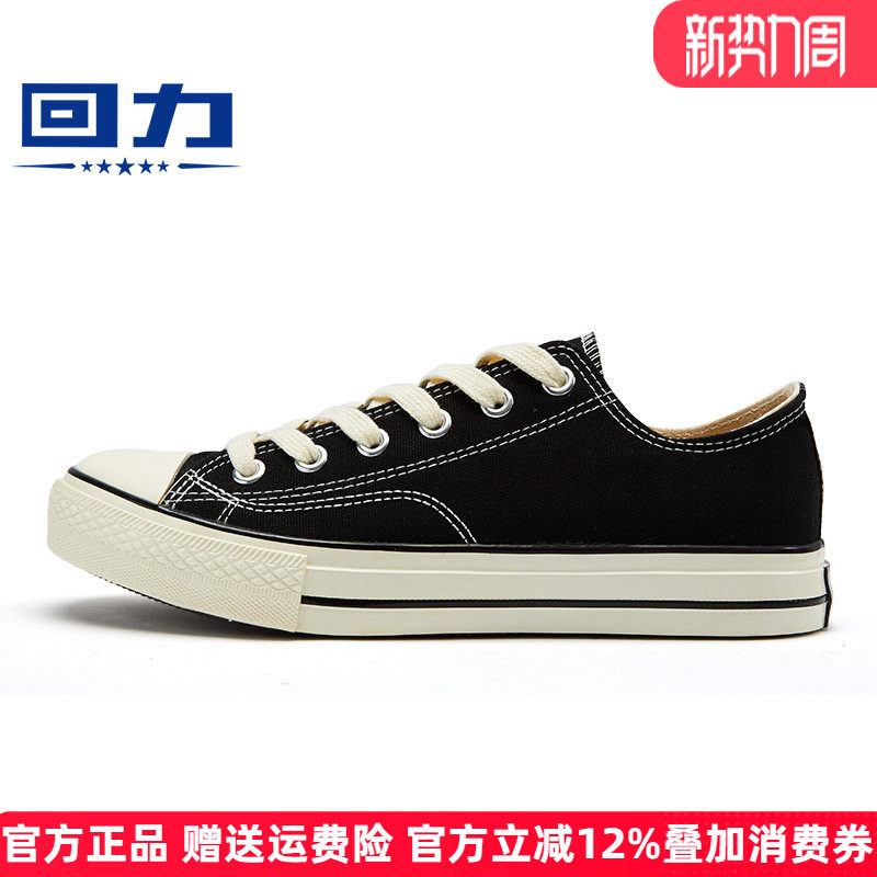 回力帆布鞋女款2026年春季新款低帮平底板鞋休闲百搭透气黑色女鞋