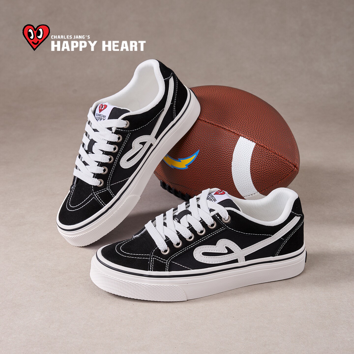 查尔斯桃心黑色板鞋女款厚底2026春季新款休闲帆布鞋平底运动鞋子