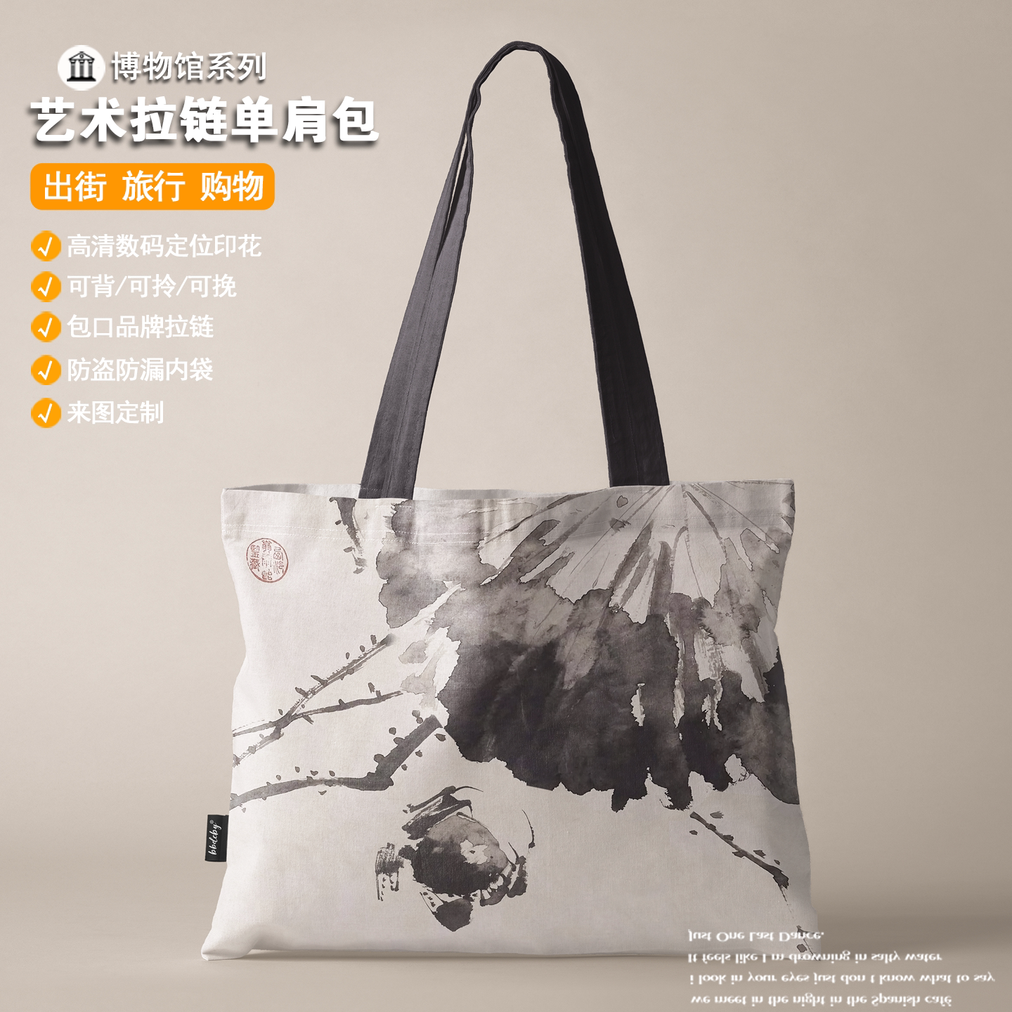 徐渭黄甲图横版拉链单肩包环保购物袋帆布包书包手提袋礼袋艺术包