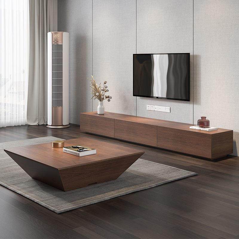 家用现代简约新款电视柜茶几组合套装小户型客厅落地胡桃色轻奢柜