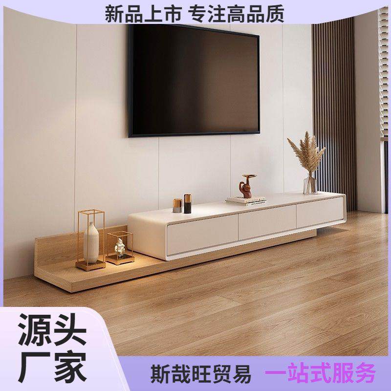 简约北欧电视柜升降茶几组合套装现代岩板可伸缩小户型落地柜定制