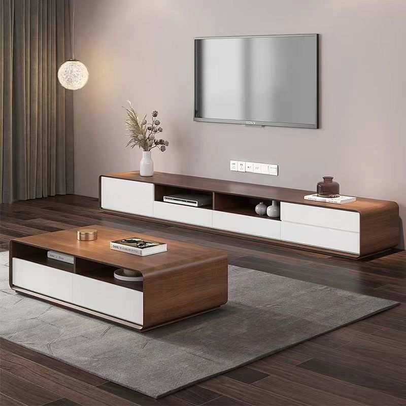 北欧现代茶几电视柜组合套装可伸缩简约电视柜客厅小户型实木定制