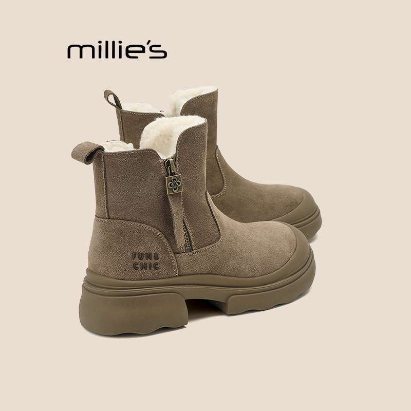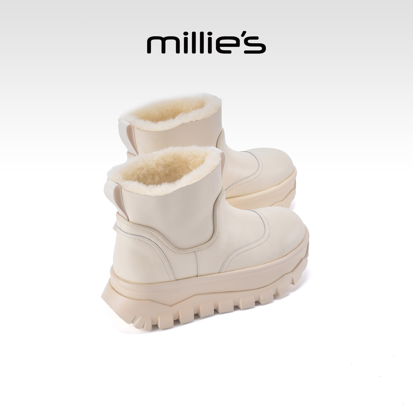 MILLIE'S/妙丽加绒雪地靴女厚底短靴冬季保暖秋冬新款百搭烟筒靴