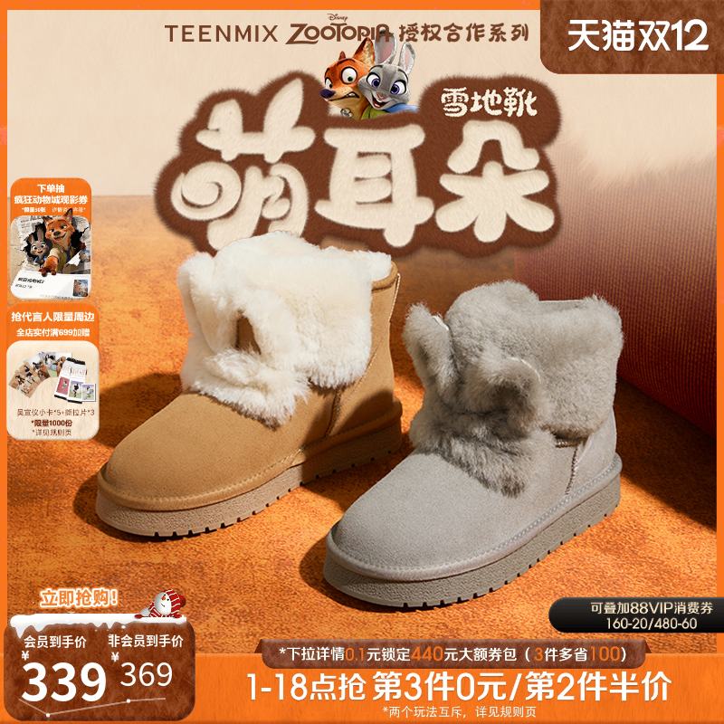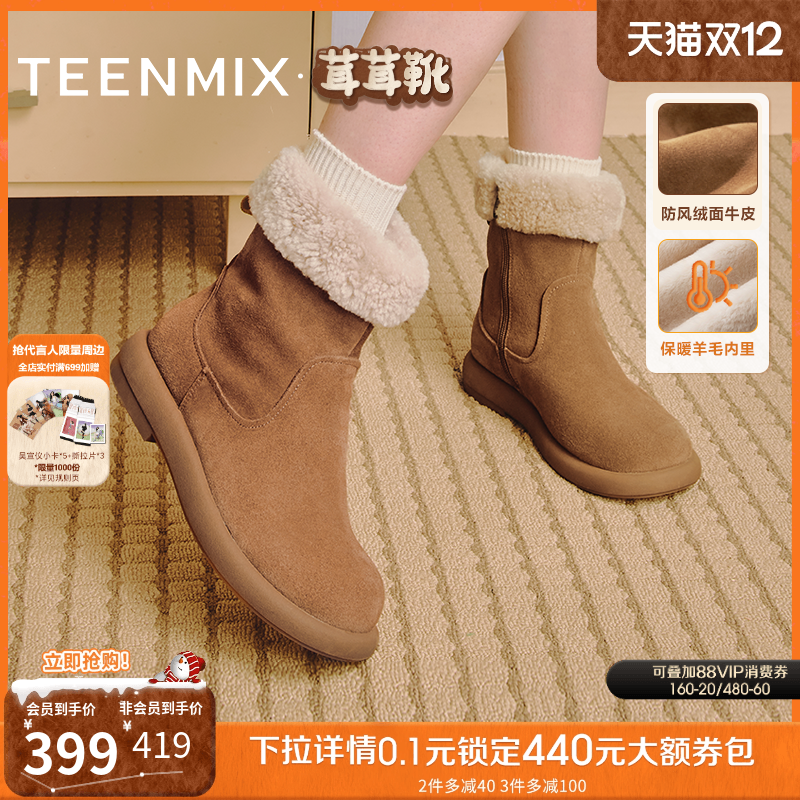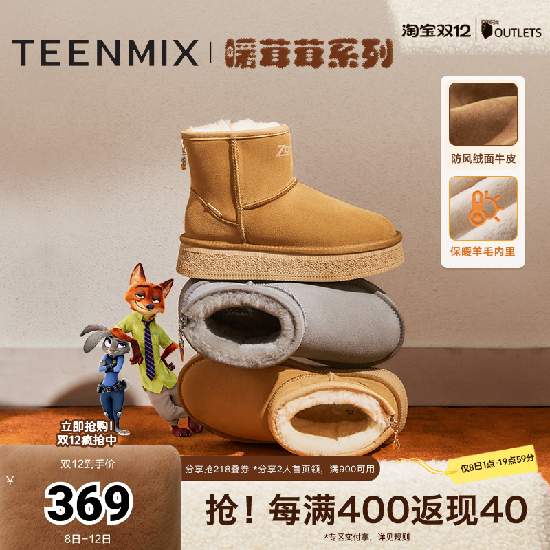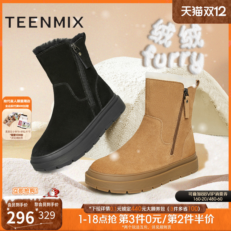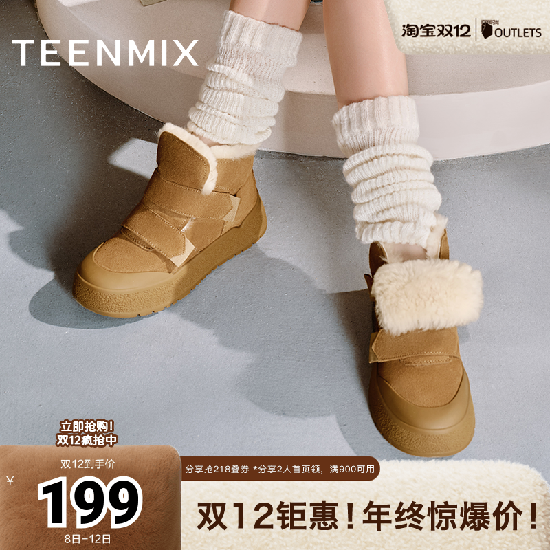 天美意茸茸靴复古休闲保暖加绒雪地靴棉鞋女鞋子厚底短靴冬季新款