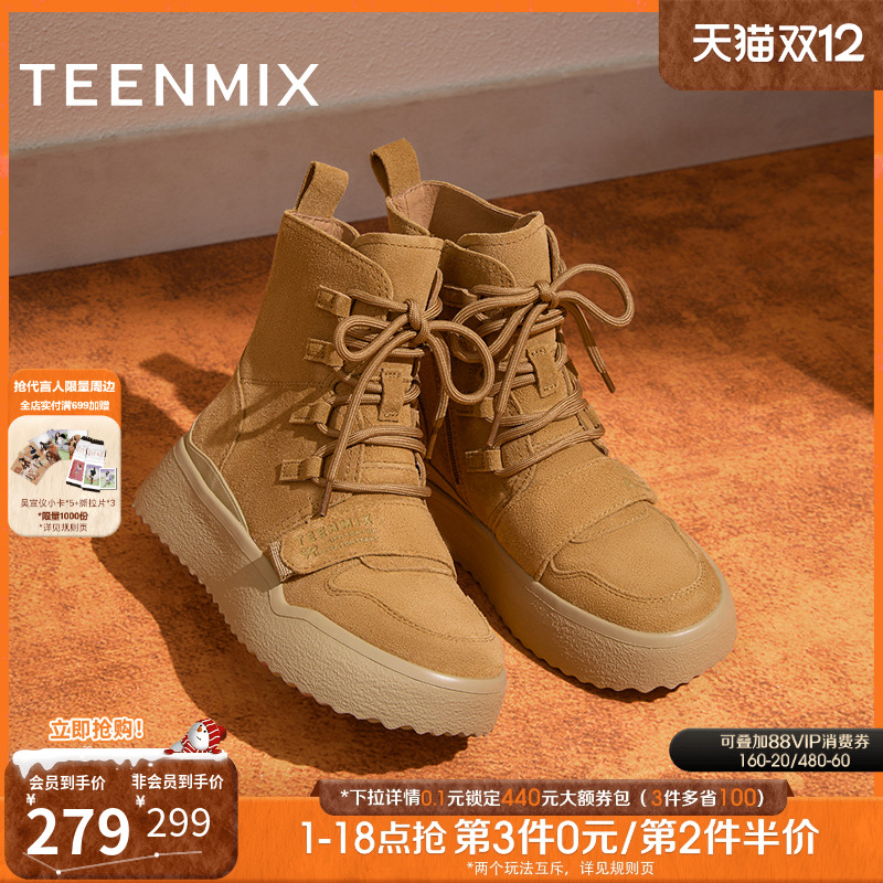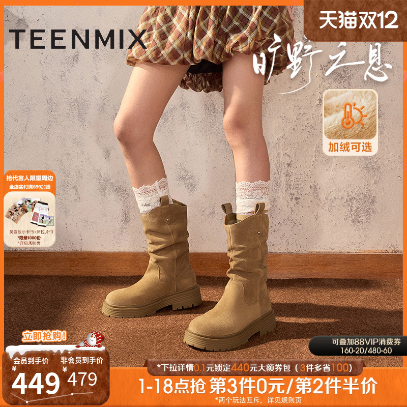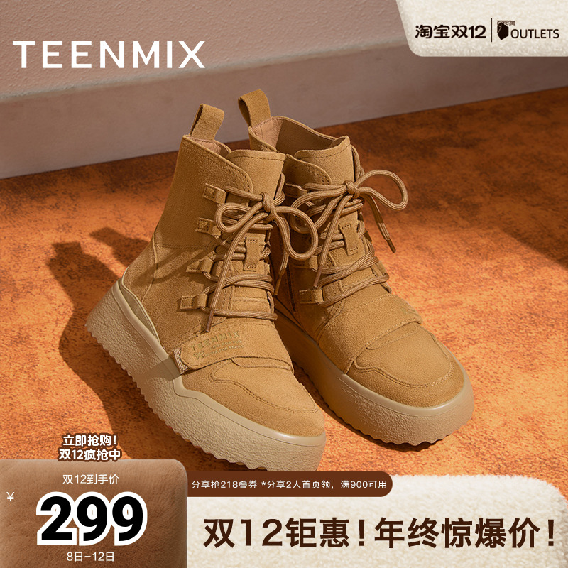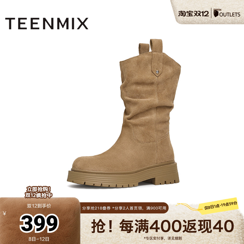 天美意旷野之息复古西部靴骑士靴女鞋厚底短靴冬新款KQZ01DZ4
