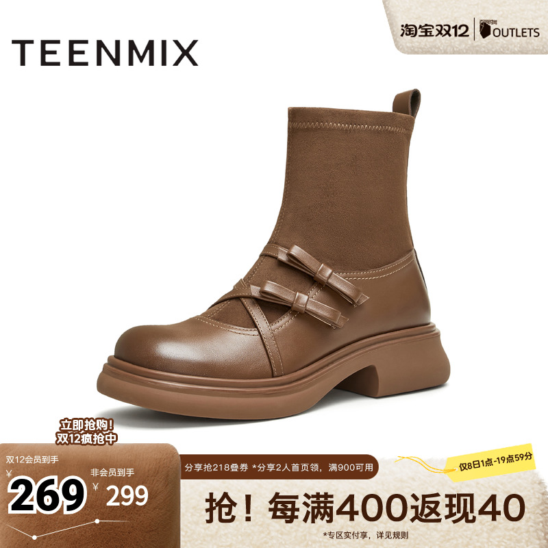 天美意复古英伦弹力靴袜靴女鞋瘦瘦靴厚底短靴冬新款BJ871DD4
