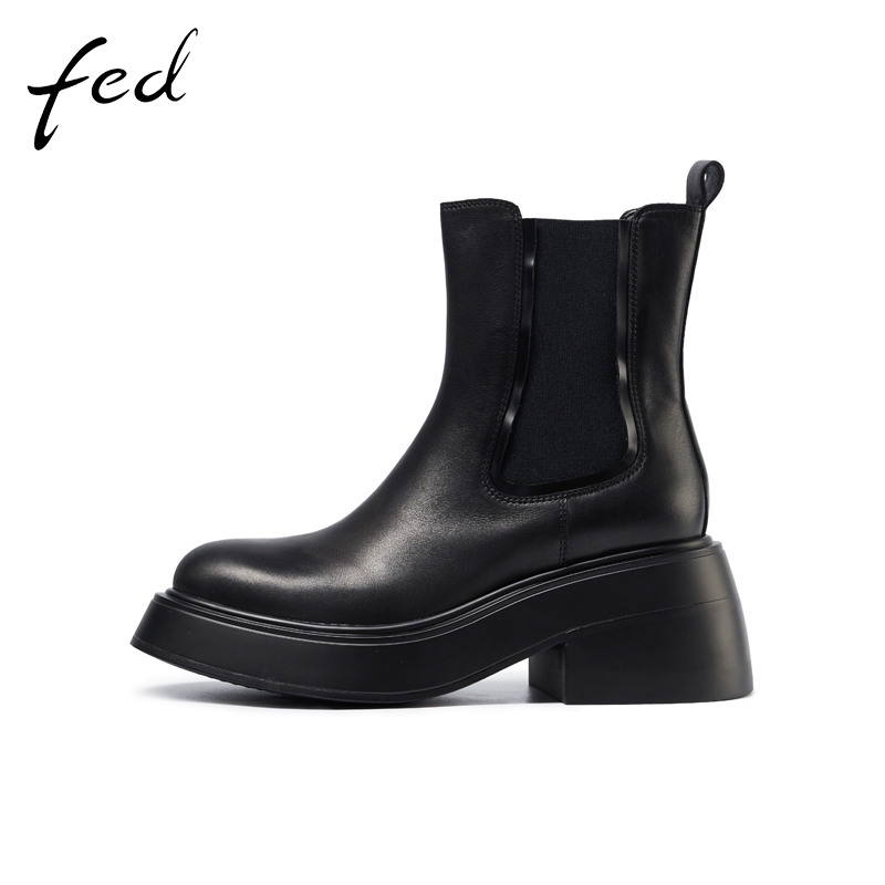 fed商场同款厚底短靴冬季新品靴子气质英伦风烟筒靴女830-YAC107