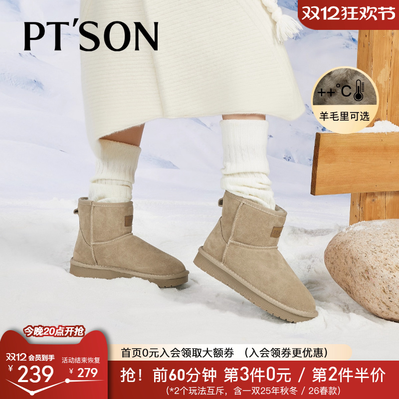 天美意户外休闲加绒保暖雪地靴棉鞋女厚底短靴冬新款CPP46DD4