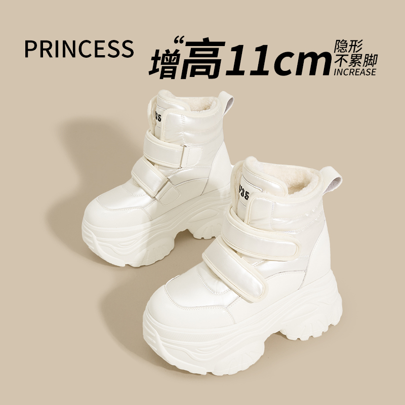 11CM内增高雪地靴女2025新款小个子时尚厚底短靴冬季加绒加厚棉靴
