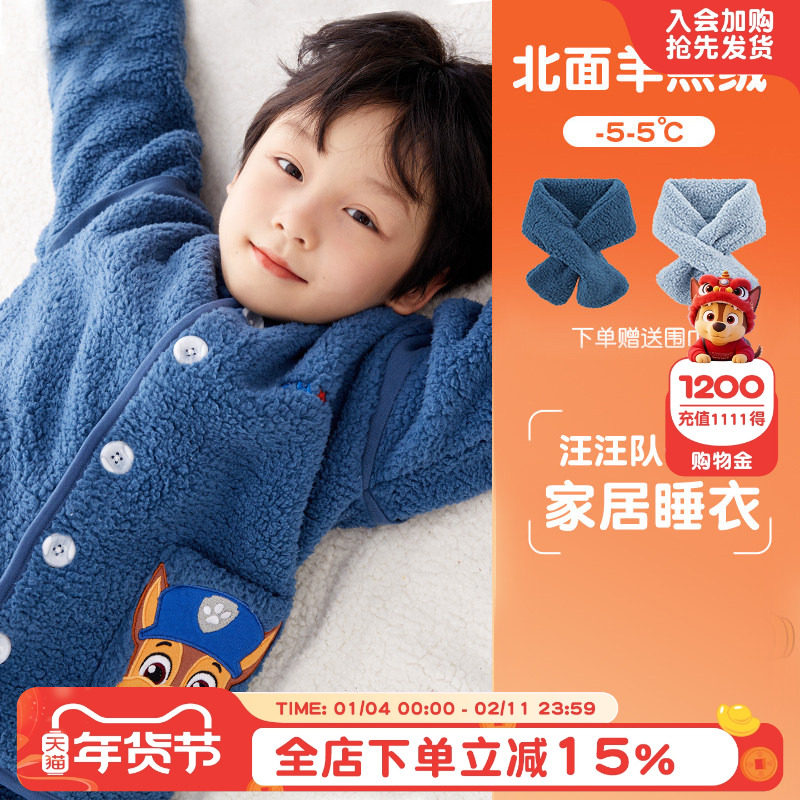 千线艺【强抗寒羊驼绒】男童睡衣冬新款加厚三层夹棉珊瑚绒家居服