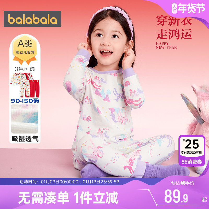 巴拉巴拉儿童秋衣秋裤小童宝宝新年款内衣套装新款女童男童睡衣冬