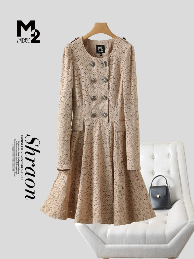 M2折扣店长袖连衣裙中长款春秋气质修身大妈园领打底连衣裙风衣
