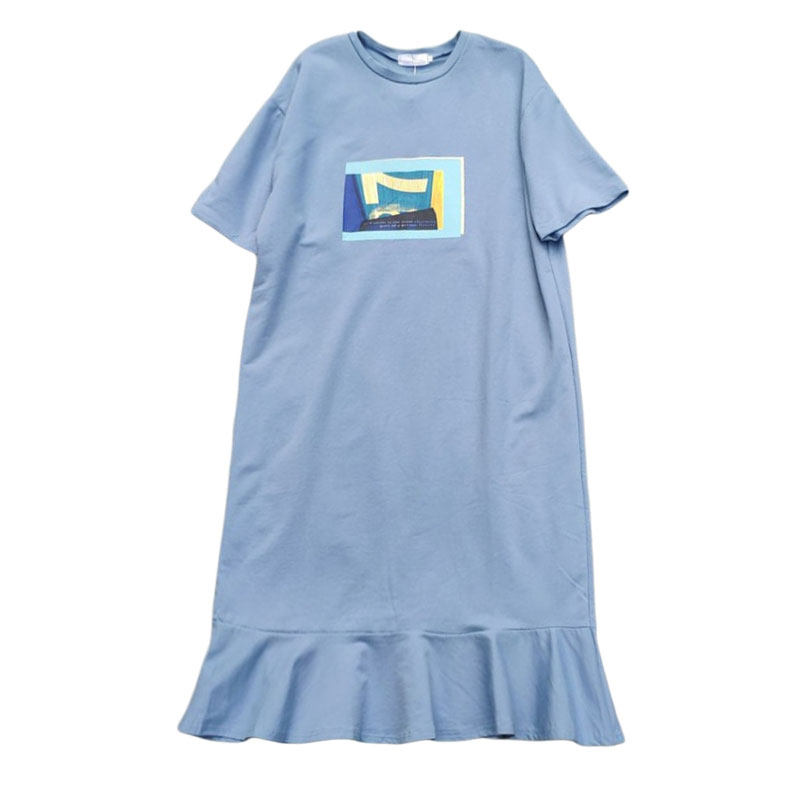 短袖宽松连衣裙 鱼尾过膝长裙 毛圈棉雾霾蓝 有大妈女韩版5 GC29