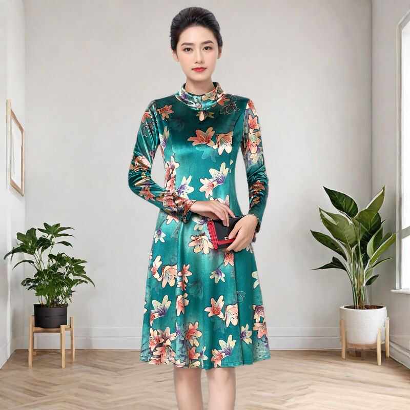 中年高档洋气连衣裙2025春秋新款高级感加肥加大妈妈遮肚高贵旗袍